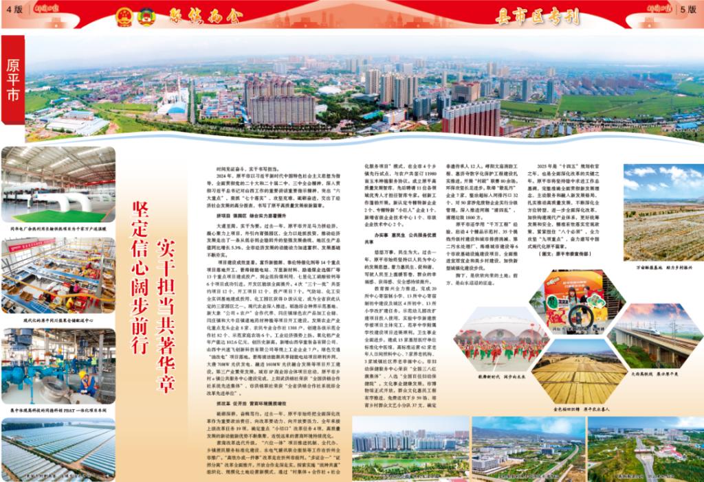 堅(jiān)定信心闊步前行 實(shí)干擔(dān)當(dāng)共著華章 時(shí)間見(jiàn)證奮斗,實(shí)干書(shū)寫(xiě)擔(dān)當(dāng)。 2024年,原平市以習(xí)近平新時(shí)代中國(guó)特色社會(huì)主義思想為指導(dǎo),全面貫徹黨的二十大和二十屆二中、三中全會(huì)精神,深入貫徹習(xí)近平總書(shū)記對(duì)山西工作的重要講話(huà)重要指示精神,突出“六大重點(diǎn)”,狠抓“七個(gè)落實(shí)”,攻堅(jiān)克難,砥礪奮進(jìn),交出了經(jīng)濟(jì)社會(huì)發(fā)展的高分報(bào)表,書(shū)寫(xiě)了原平高質(zhì)量發(fā)展嶄新篇章。