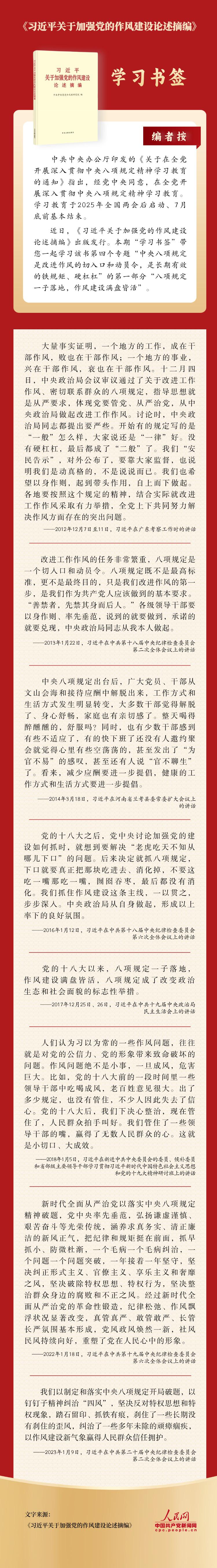 《習(xí)近平關(guān)于加強(qiáng)黨的作風(fēng)建設(shè)論述摘編》 學(xué)習(xí)書簽丨八項(xiàng)規(guī)定一子落地,作風(fēng)建設(shè)滿盤皆活