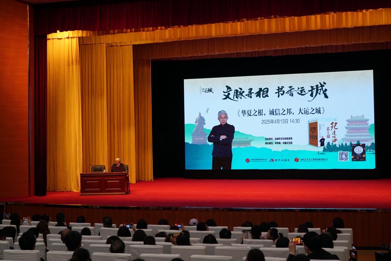 活動(dòng)第三站,紀(jì)連海在鹽湖會堂帶來了一場精彩的文化講座——《華夏之根 誠信之邦 大運(yùn)之城》。他延續(xù)以往幽默詼諧的風(fēng)格,借生動(dòng)故事與詳實(shí)史料,從華夏文明起源講起,闡述關(guān)公忠義文化,再到運(yùn)城當(dāng)下發(fā)展,徐徐展開運(yùn)城歷史文化長卷?,F(xiàn)場笑聲、掌聲不斷,觀眾沉浸其中。當(dāng)他妙語解讀關(guān)羽為“最早帶貨(忠義)達(dá)人”時(shí),臺下觀眾被逗得捧腹,直呼“紀(jì)氏歷史課比追劇還精彩”。