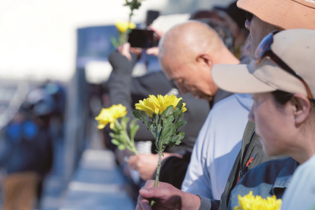 圖①:9月18日,在沈陽(yáng)“九·一八”歷史博物館殘歷碑廣場(chǎng)拍攝的“勿忘九一八”撞鐘鳴警儀式現(xiàn)場(chǎng)。