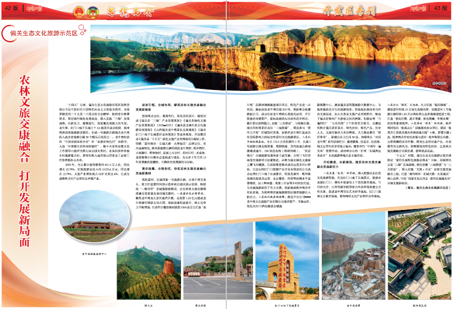 “十四五”以來,偏關(guān)生態(tài)文化旅游示范區(qū)始終堅持以習近平新時代中國特色社會主義思想為指導,全面貫徹黨的二十大及二十屆歷次全會精神,按照省市部署要求,堅定踐行綠色發(fā)展理念,深入實施“三綠”發(fā)展戰(zhàn)略,向新發(fā)力,逐綠前行,高質(zhì)量發(fā)展駛?cè)肟燔嚨?。老牛灣、紅門口地下長城2個4A級景區(qū)成功創(chuàng)建,乾坤灣獲批省級旅游度假區(qū);長城一號旅游公路偏關(guān)老牛灣段入選全省旅游公路28個精品示范段之一;老牛灣村獲得“中國美麗休閑鄉(xiāng)村”和“農(nóng)家樂特色村”雙稱號,入選“中國慢生活休閑體驗區(qū)”,被中央宣傳思想文化工作領(lǐng)導小組評為第七屆全國文明村;水泉村獲評省級鄉(xiāng)村旅游重點村;黃河宿集入選首批山西省總工會職工療休養(yǎng)服務點名單。
